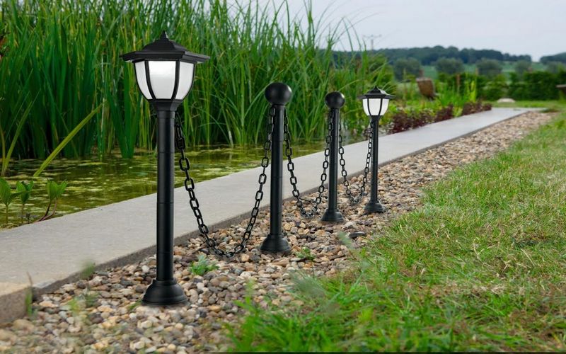 Lampa solarna antyczny płot - 2 lampy i 2 słupki połączone łańcuchem.