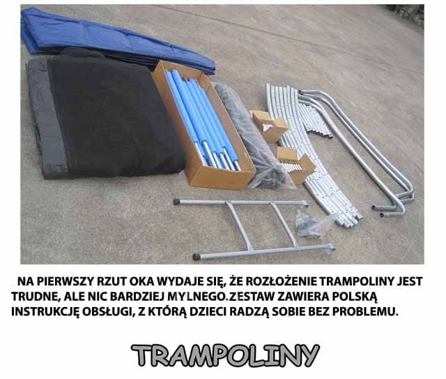 jest wspaniałym urządzeniem rekreacyjnym dla dzieci i ze względu na rewelacyjną cenę, dostępnym dla każdego. Może być wspaniałym prezentem na Komunię, Dzień Dziecka lub urodziny. Jest to najwyższej jakości wyrób z niezwykle wytrzymałą, amerykańskiej licencji matą do skakania. Jej wysokość od ziemi (68 cm) zapewnia, że przy skokach wykonywanych przez nawet 150-kilogramową osobę, nie dotknie się podłoża.